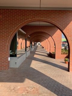 中山道の建物の隙間からチラッとみえるのが、実は、深谷市役所になります