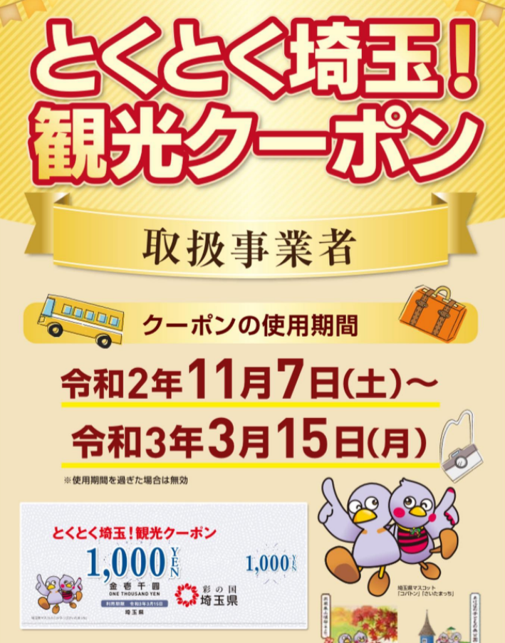 とくとく埼玉!観光応援キャンペーン公式HPをご覧下さい